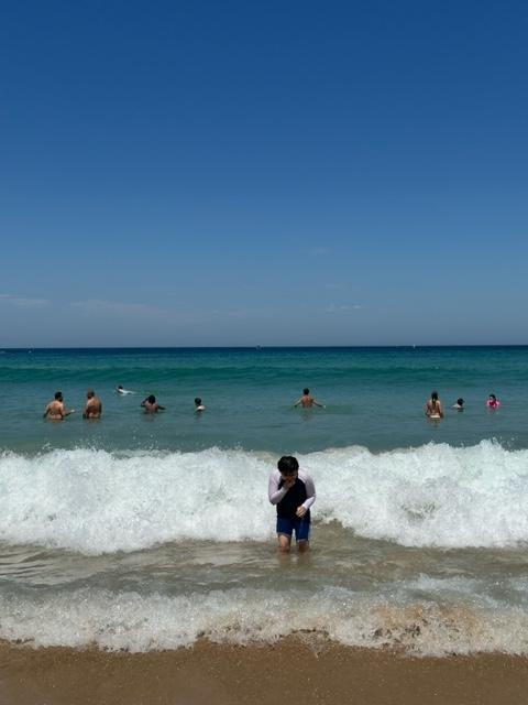 사실 저는 물을 별로 좋아하지 않아서 바다에는 들어갈 생각이 전혀 없었습니다. 수영복도 애꺼만 챙겼고 돗자리 펴고 책이나 읽을려고 했는데 아이가 여기까지 왔는데 같이 물놀이 하면 안되냐고 해서 결국.. 주변 수영복 파는데로 갔습니다. 어느 정도 갖춰진 가게에서 수영복을 봤는데 10만원이 훌쩍 넘더라고요.. 너무 비싸다는 생각이 들어서 관광객 대상으로 쫘악 걸어놓고 파는 가게로 들어가서 아래위 40 호주달러 정도 되는걸 사서 왔어요. (이번 강릉 여행때 잘 입긴 했어요 ㅎ)